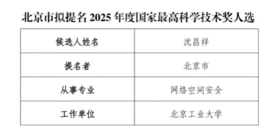 2025年6月,沈昌祥院士被北京市提名2025年度国家最高科学技术奖。